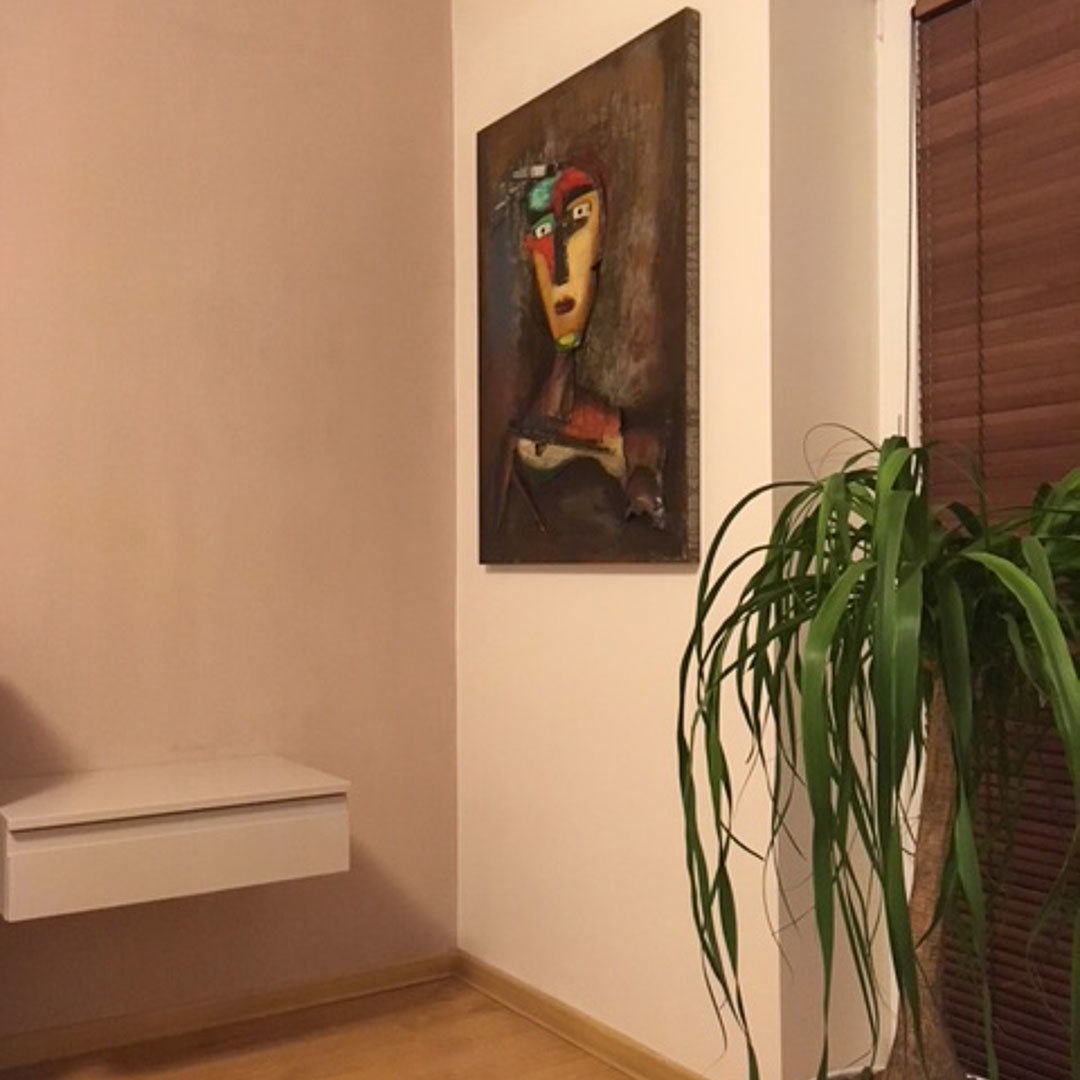 Ik ben dol op het schilderij dat ik net heb gekocht, het past perfect bij mijn interieur.